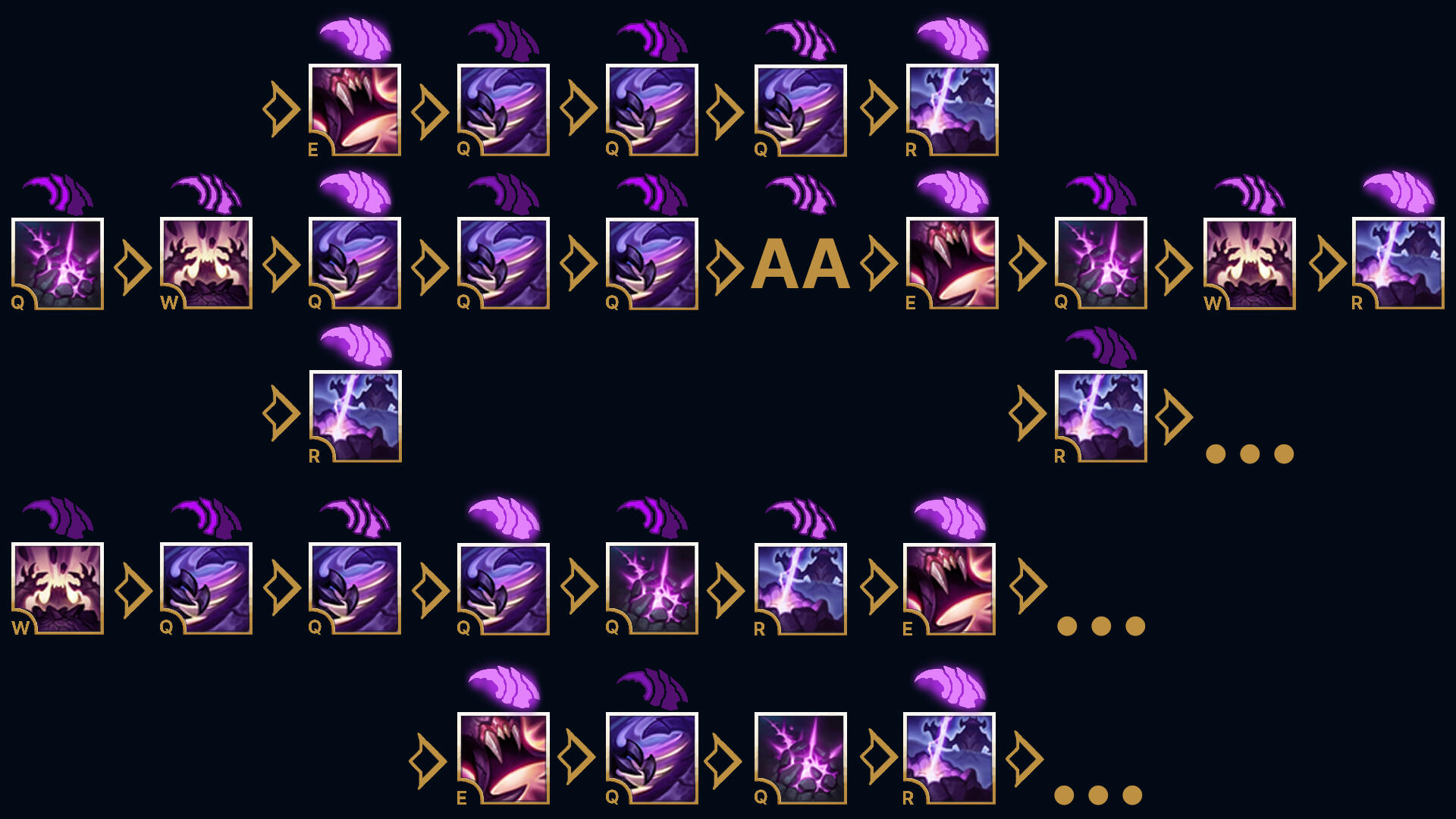 I wanted to expand on this, so players would have different ways to approach fights, and so I ended with the Prey Stacks.With her new passive, I could empower all damaging abilities of Rek'Sai. Giving room for many combo possibilities. I added multiple empower effects that have different goals, like executing enemies (E), extended fights (Q), sniping low health enemies who escaped (Burrowed Q), more cc for sticking on enemies (W) and increasing the chance to execute with your ult (R).